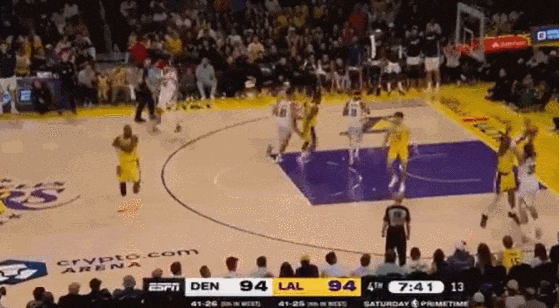 常规阶段收尾,里夫斯故意罚球不中,成功抢到进攻篮板并命中抛投拯救了湖人拖进加时赛。